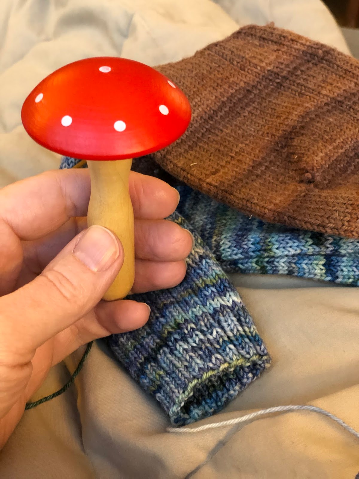 Never used one of these before, but a hole in the bottom my my husbands sock meant I had to try. I think it went pretty well - I opted for the woven technique since the edges were pretty frayed. The repair has been holding up nicely and doesn't seem to bother him too much - success!